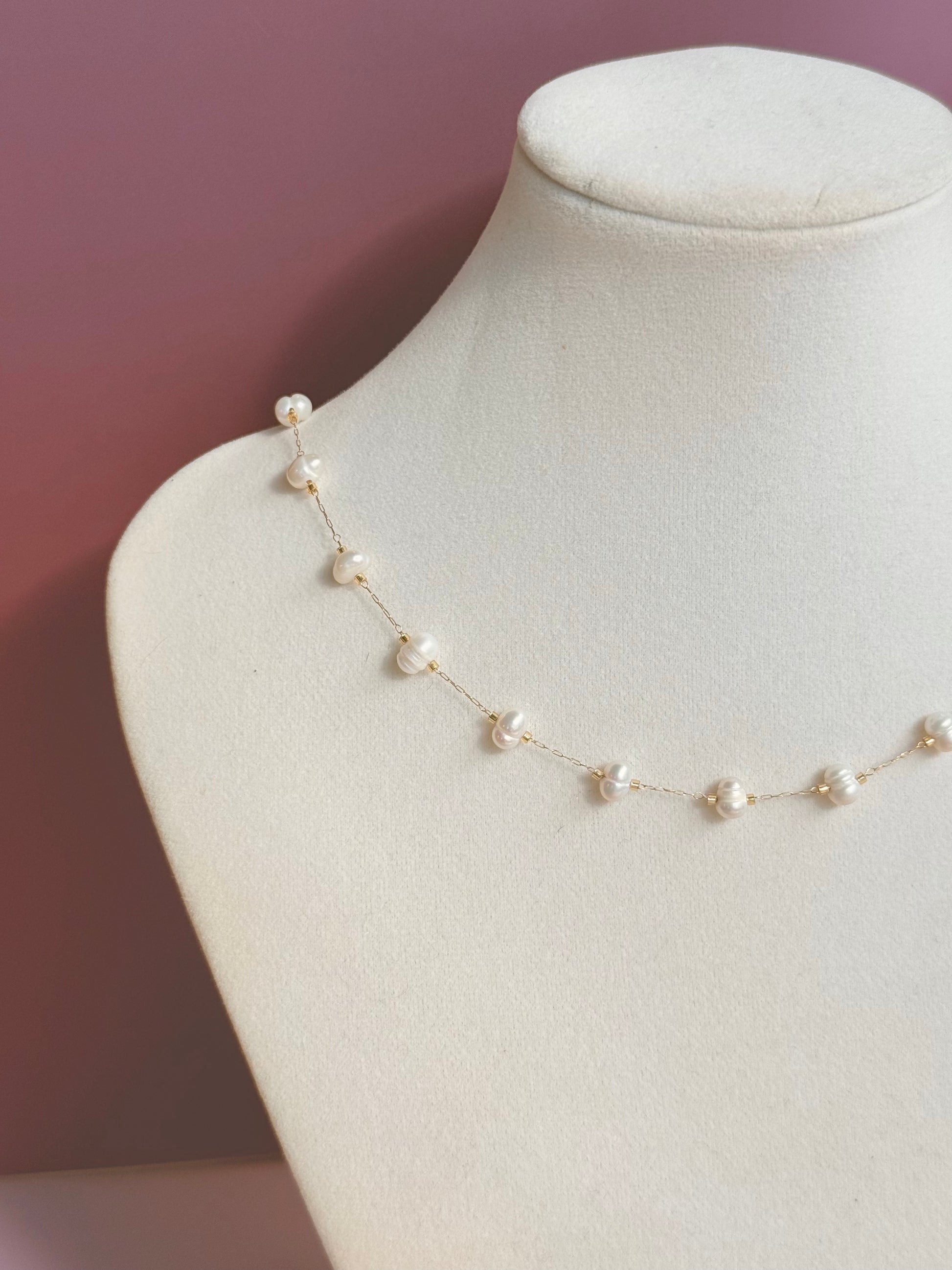 The Freshwater Pearl Necklace features a 14k gold filled clasp, providing both elegance and durability, while being tarnish free. The perfect accessory for any occasion, this bracelet showcases the natural beauty of freshwater pearls. Upgrade your jewelry collection with this timeless piece.